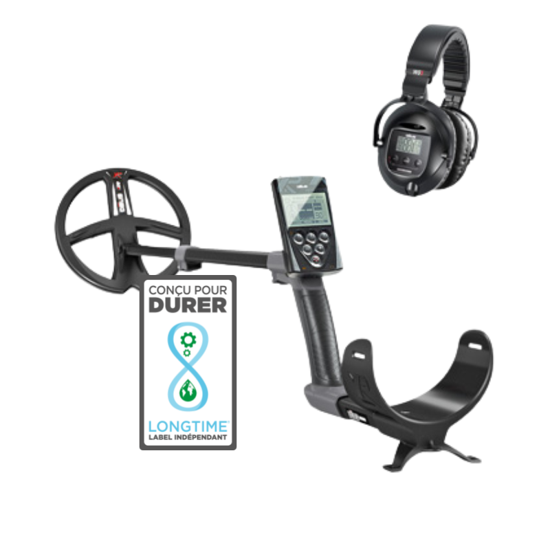 The XP DEUS detector, equipped with a 22.5 cm X35 coil, DEUS remote control, WS5 headphones, and S-Telescopic stem, is a complete, modular, and long-lasting wireless set. The coil, encapsulated in protective resin and fitted with a removable cover, offers 35 adjustable frequencies (from 3.7 to 27.7 kHz) and ensures strong mechanical and electronic stability in varied conditions.