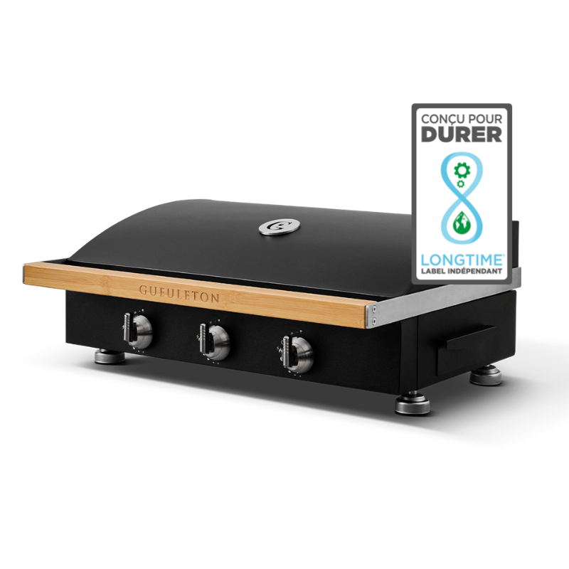 Conçue pour les amateurs de gastronomie, la plancha Gueuleton en fonte garantit une cuisson homogène et savoureuse. Sa plaque de 7 mm d’épaisseur assure une montée en température rapide et une parfaite restitution des saveurs. Avec 3 brûleurs indépendants (7,95 kW) et une surface de cuisson généreuse (72 x 40 cm), elle permet de régaler jusqu’à 12 convives. Son design élégant et sa fabrication française en font un équipement haut de gamme, robuste et durable.