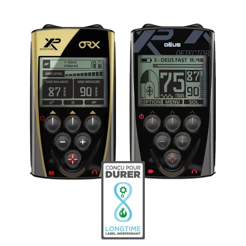 La télécommande XP ORX est l’interface centrale du détecteur du même nom. Compacte, légère et intuitive, elle permet de piloter l’ensemble des fonctions de détection sans fil grâce à la technologie radio XP. Son écran rétroéclairé protégé et ses commandes robustes assurent une excellente lisibilité et une prise en main confortable, même avec des gants. Conçue pour durer, elle résiste aux projections d’eau, à la poussière et aux conditions de terrain exigeantes. Sa conception modulaire facilite la réparation : batterie, écran, carte électronique et boutons sont remplaçables individuellement. Elle bénéficie d’une garantie de 5 ans, et sa batterie est garantie 2 ans — un engagement fort pour un composant généralement non couvert. Labellisée LONGTIME®, la télécommande ORX offre une solution fiable, durable et réparable pour une détection exigeante.